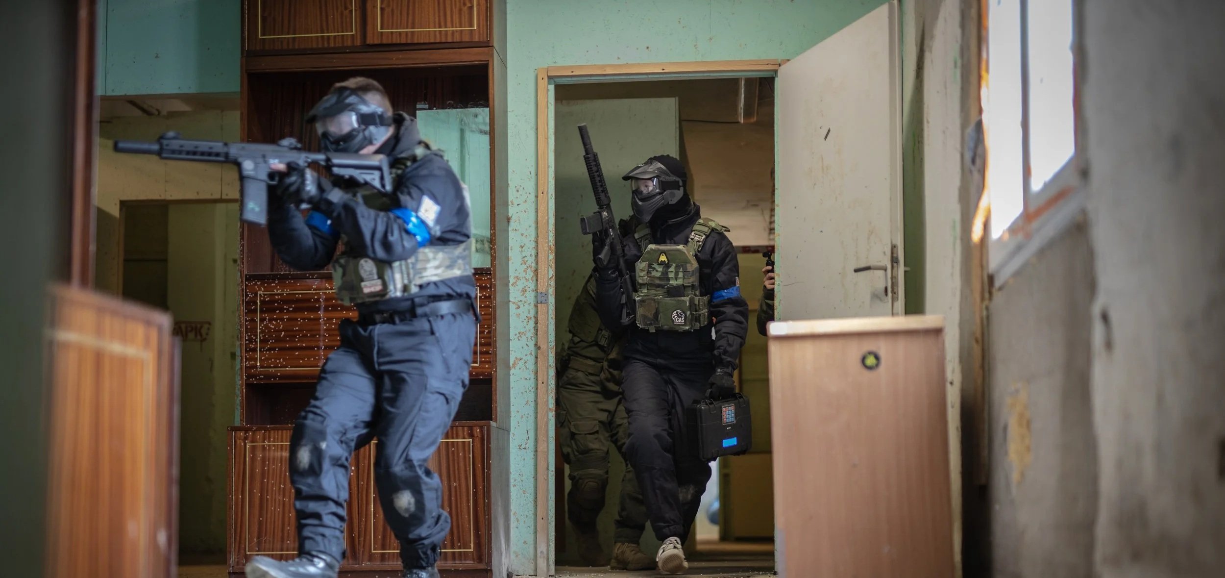 Farma CQB Lovosice (vnitřní, Lovosice) — adrenalinový zážitek v prostorách připomínající kancelářské a bytové prostory, kde špatné počasí nehraje roli.